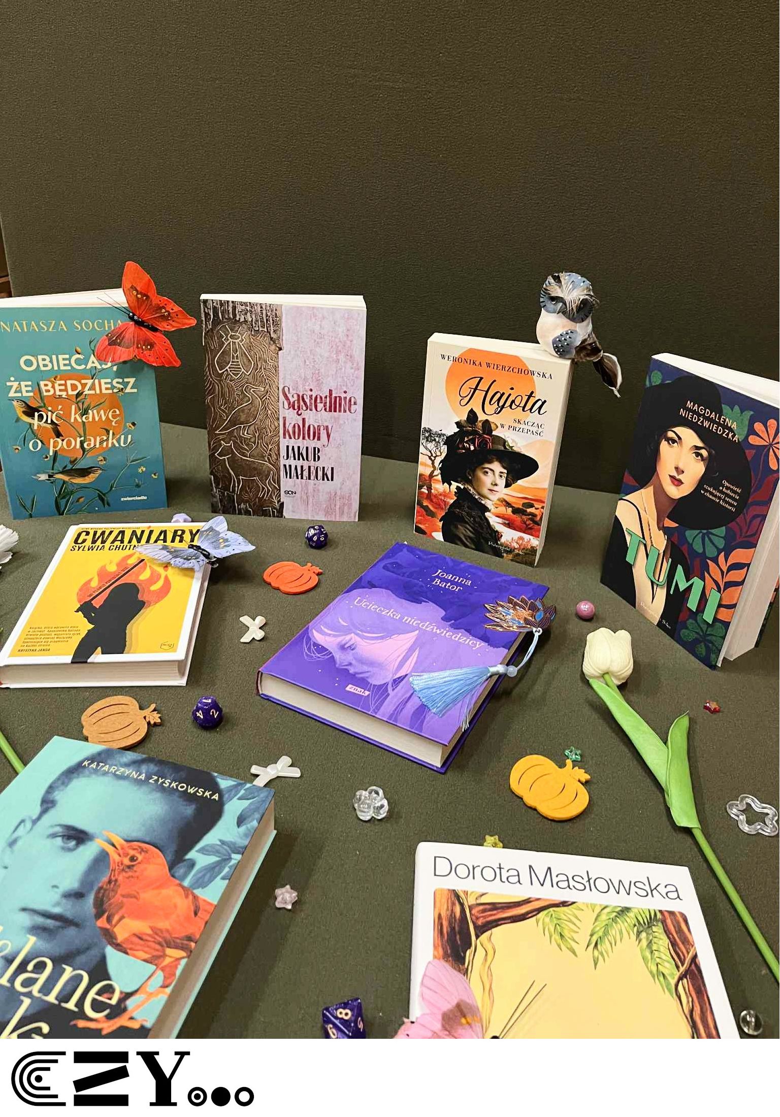 Mamy nadzieję, że zdjęcia wystawek tematycznych książek wykonanych przez uczennice klasy 1F zachęcą Was nie tylko do sięgnięcia po promowane w ten sposób książki, ale także do ich lektury.