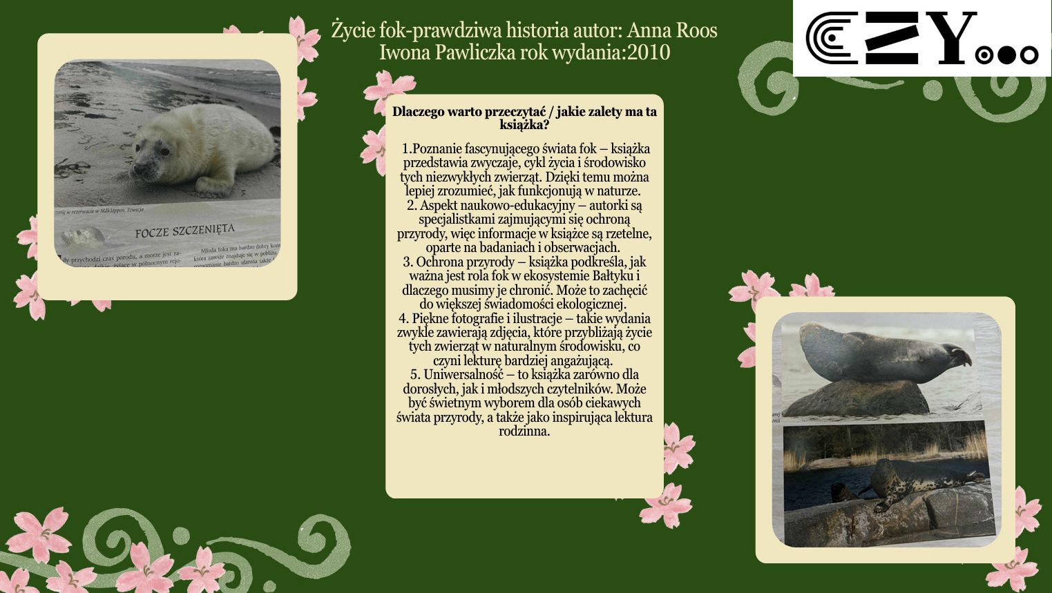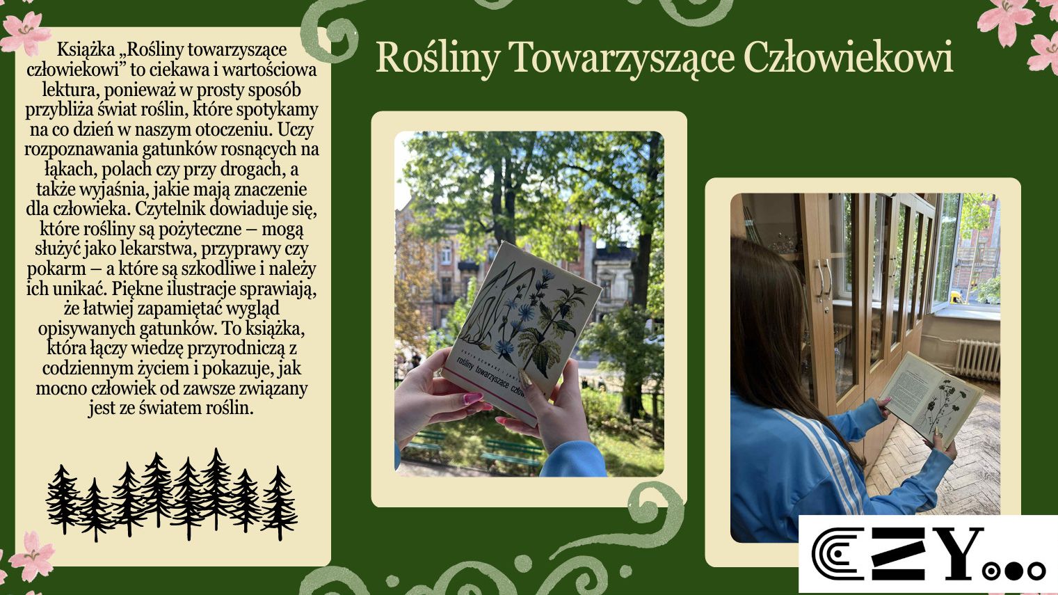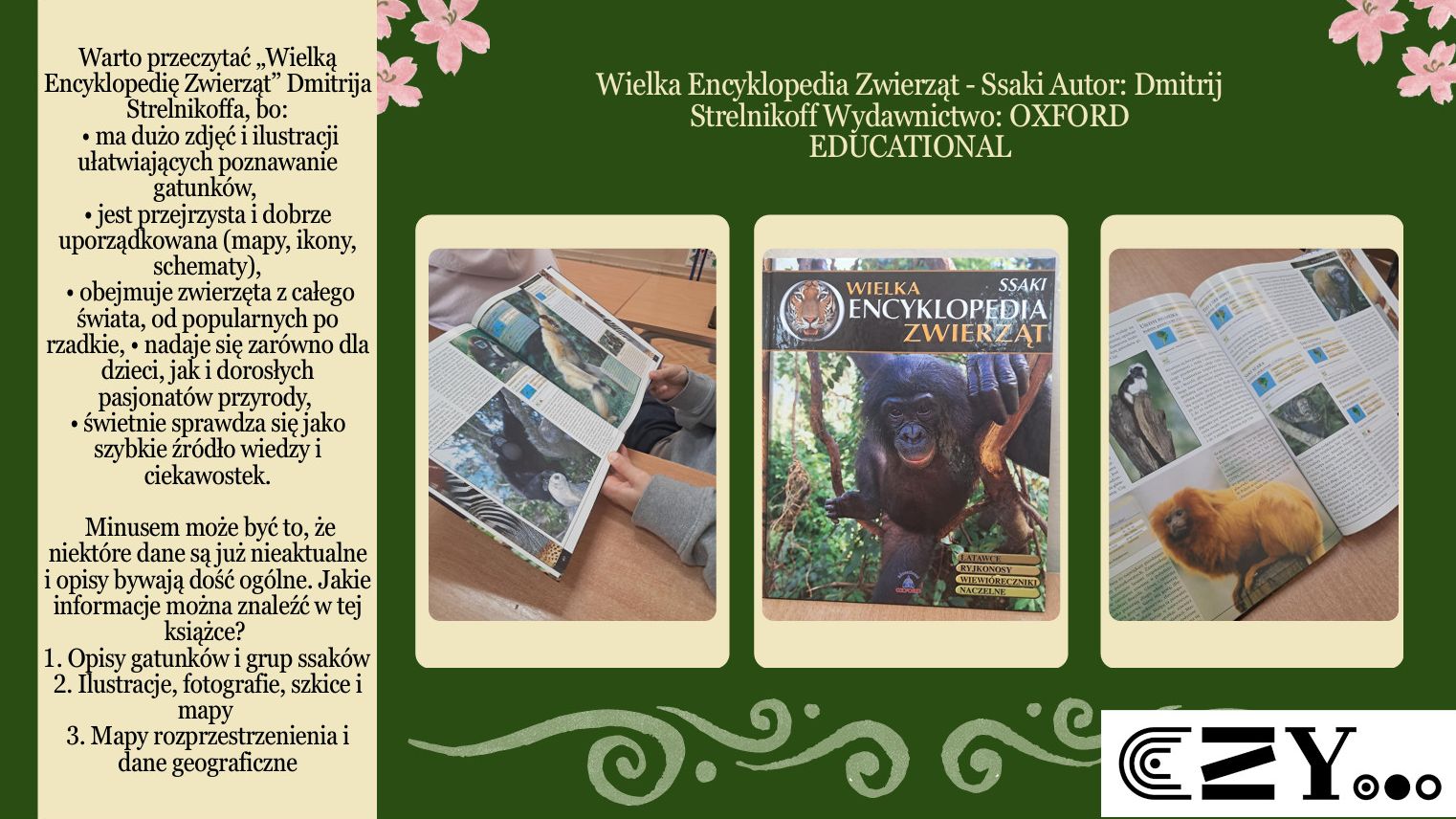 Uczniowie przygotowali prezentację, w której zaprezentowali wybrane książki dotyczące fauny i flory dostępne w zbiorach szkolnej biblioteki. Wśród nich znalazły się między innymi: „Rośliny lasu liściastego”, „Rośliny towarzyszące człowiekowi”, „Rośliny borów”, „Wielka encyklopedia zwierząt. Ssaki”, „Atlas motyli”, „Życie fok”.