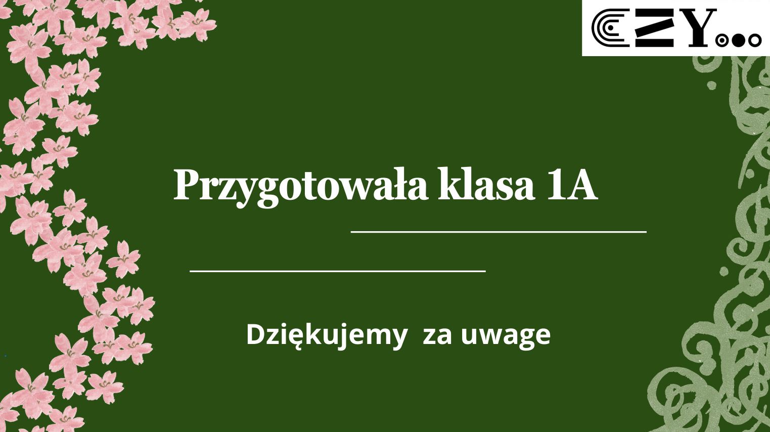 Prezentację przygotowaną przez uczniów klasy 1A można obejrzeć poniżej w postaci screenów poszczególnych slajdów.