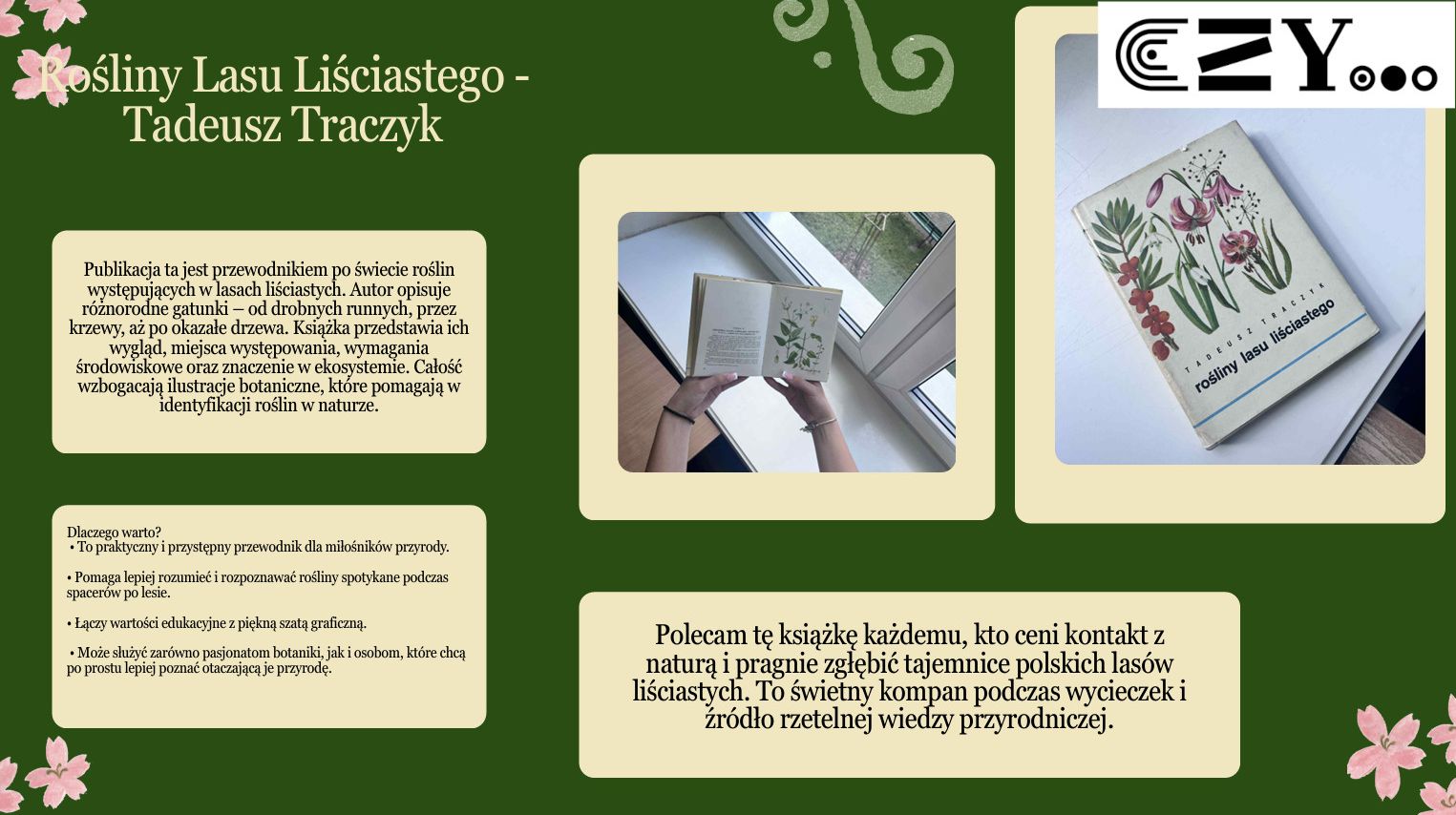 Uczniowie przygotowali prezentację, w której zaprezentowali wybrane książki dotyczące fauny i flory dostępne w zbiorach szkolnej biblioteki. Wśród nich znalazły się między innymi: „Rośliny lasu liściastego”, „Rośliny towarzyszące człowiekowi”, „Rośliny borów”, „Wielka encyklopedia zwierząt. Ssaki”, „Atlas motyli”, „Życie fok”.