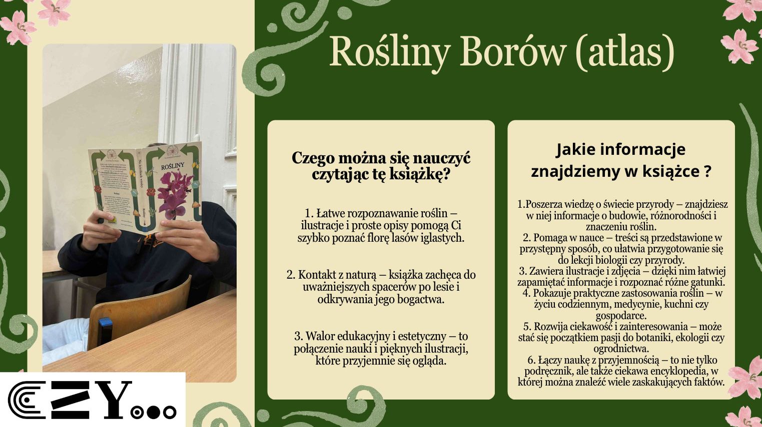 W ramach realizacji Narodowego Programu Rozwoju Czytelnictwa 2.0 uczniowie klasy 1A - pod opieką p. Olgi Adameczek-Sałudy, wychowawcy klasy oraz nauczyciela biologii - w listopadzie 2025 roku wykonali projekt edukacyjny pt. "Świat fauny i flory w oparciu o publikacje dostępne w bibliotece szkolnej".